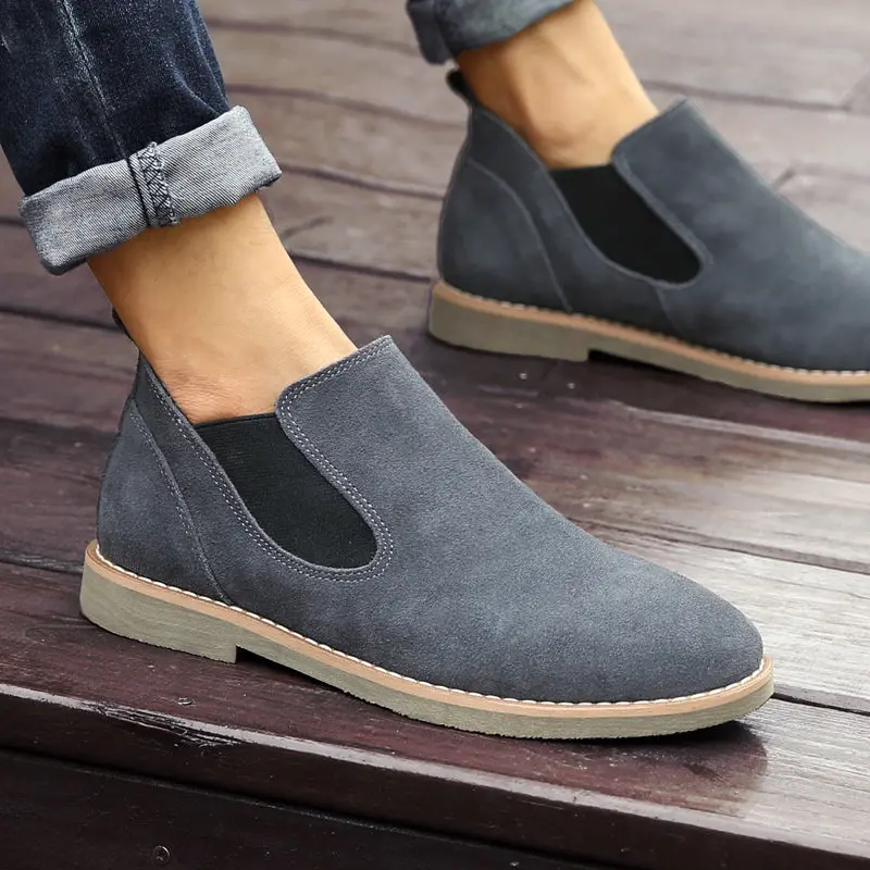 Men Retro Autumn Cowhide Leather Slip-on Ankle Boots