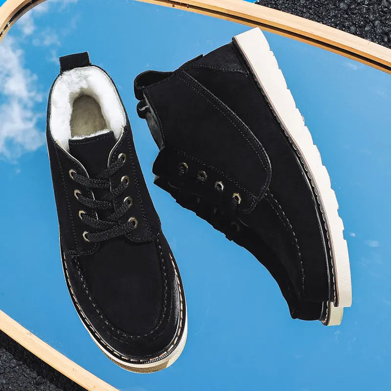 Men Winter Cowhide Wool Ankle Snow Boots