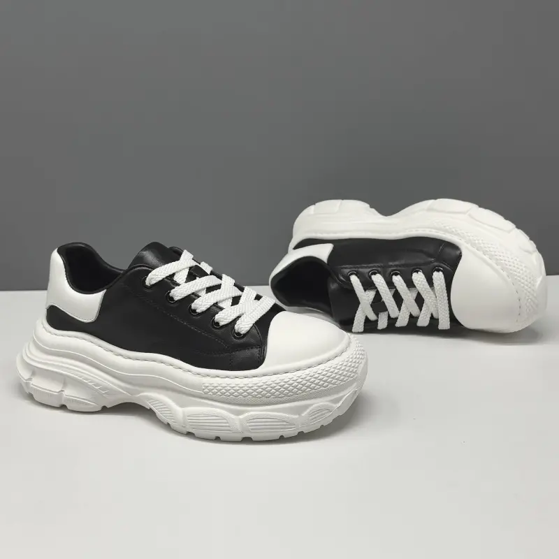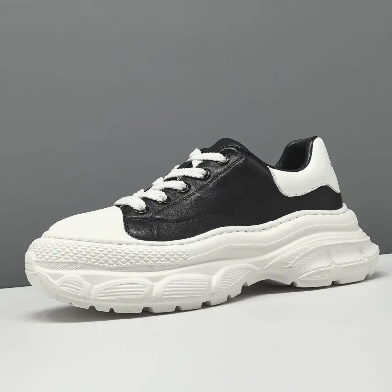 Men's Fashion Breathable Leather Thick Soled Casual Sneakers