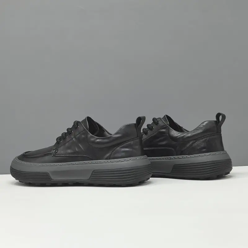 Men's Minimalist Black Leather Flat Casual Shoes