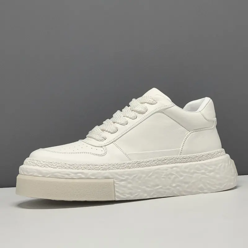 Men's Minimalist Plain Leather Flat Thick Soled Casual Shoes