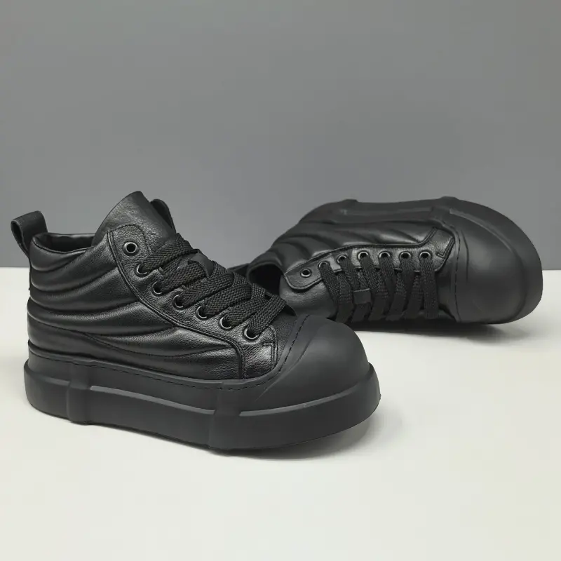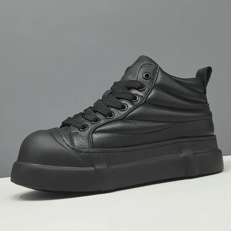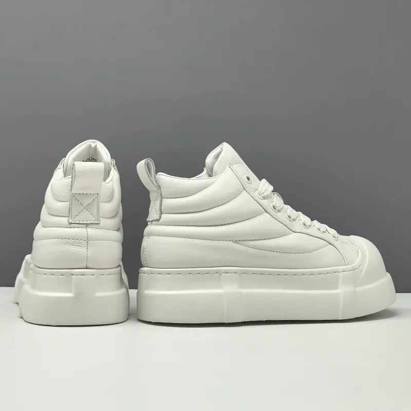 Men's Minimalist Plain Quilted Leather High Top Casual Shoes