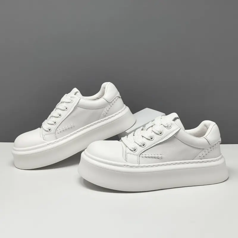 Men's Fashion Breathable Leather Thick Soled Casual Sneakers