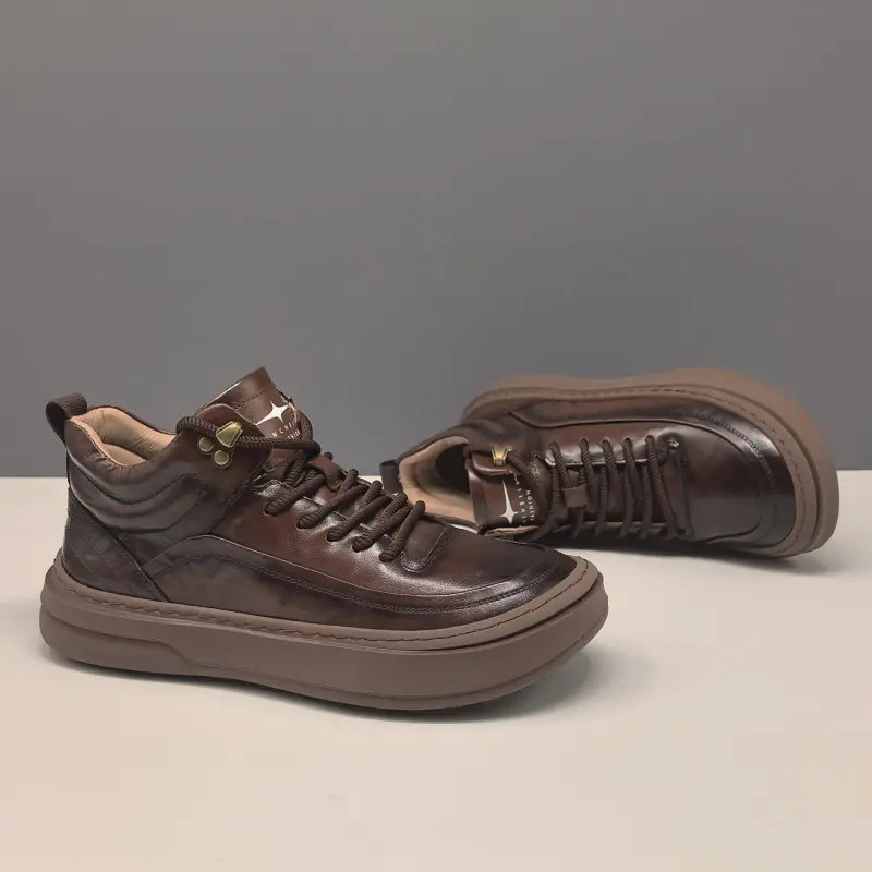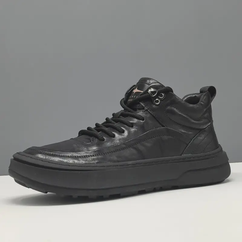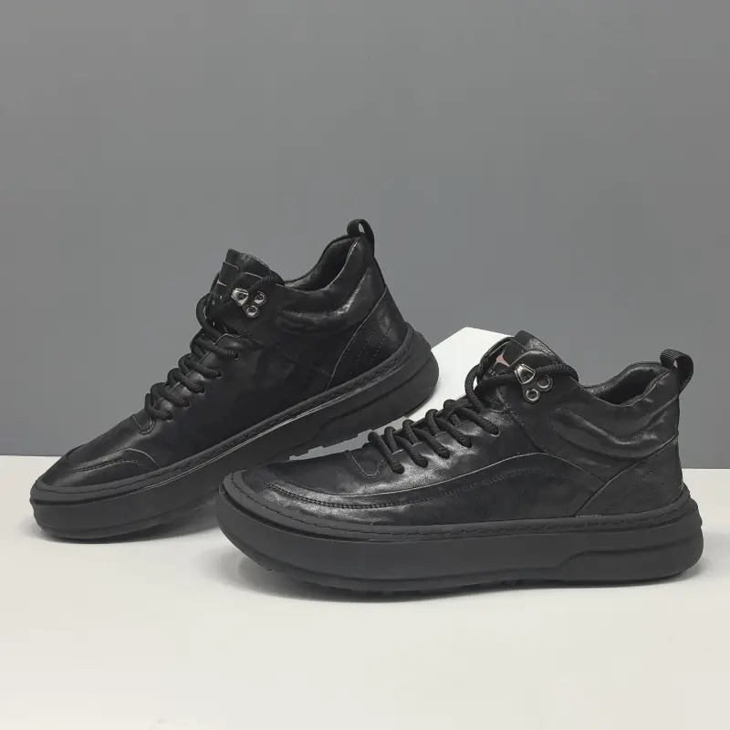 Men's Plain Breathable Quilted Leather Skate Shoes