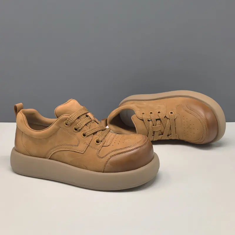 Men's Fashion Breathable Leather Thick Soled Casual Sneakers