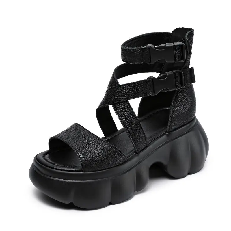 Women's Retro Plain Leather Casual Platform Sandals