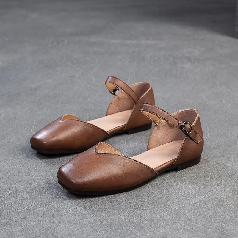 Women's Retro Plain Leather Casual Platform Sandals