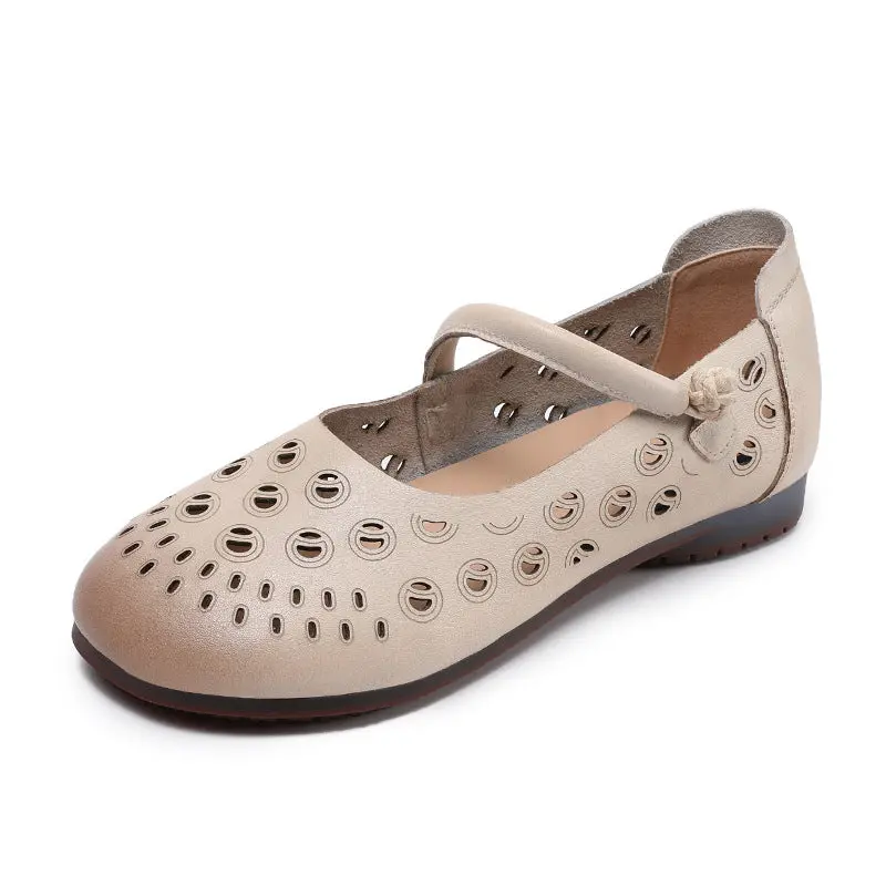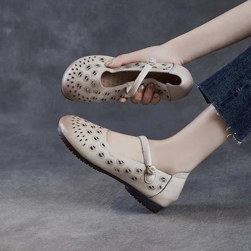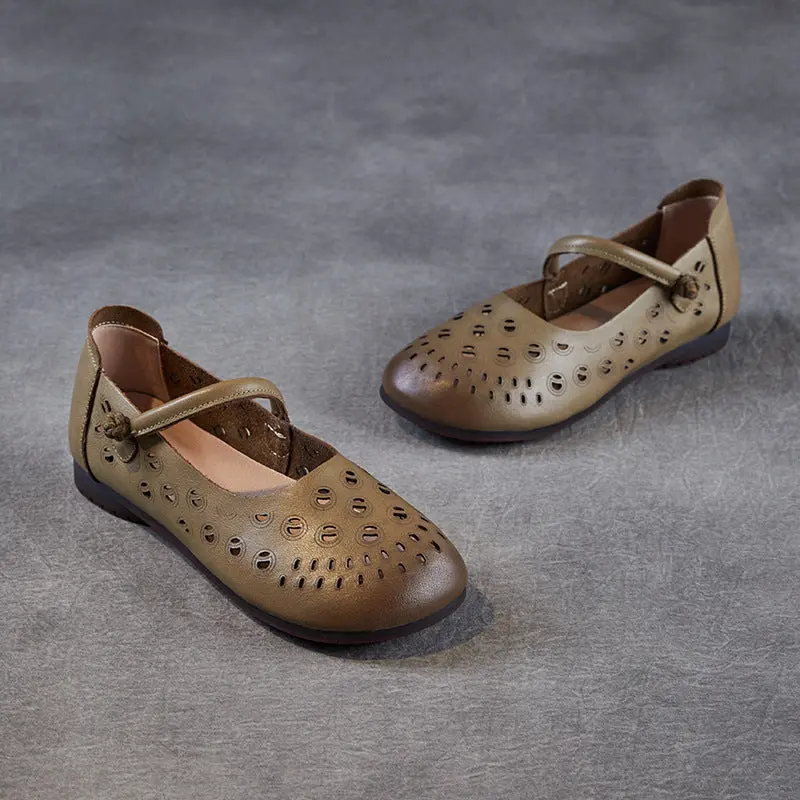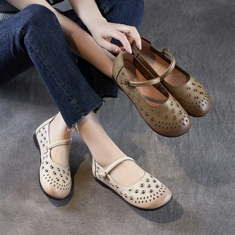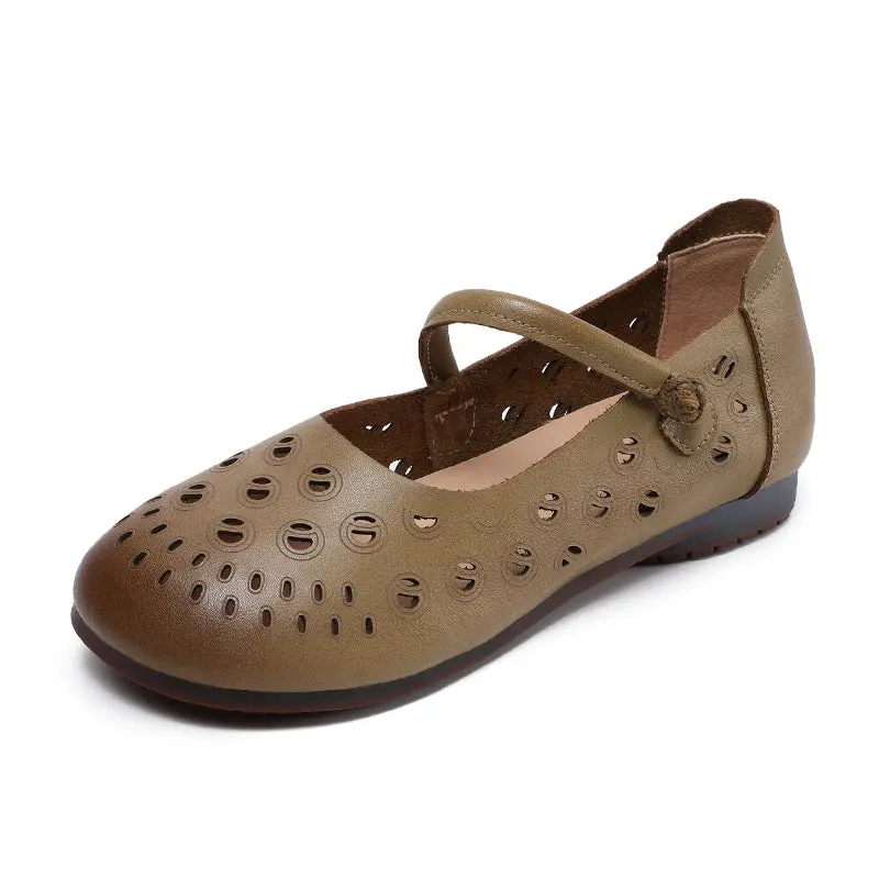 Women's Retro Plain Leather Round Head Velcro Sandals