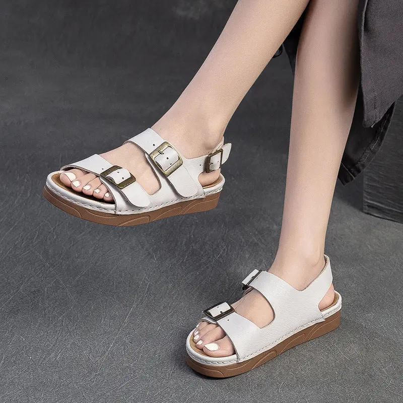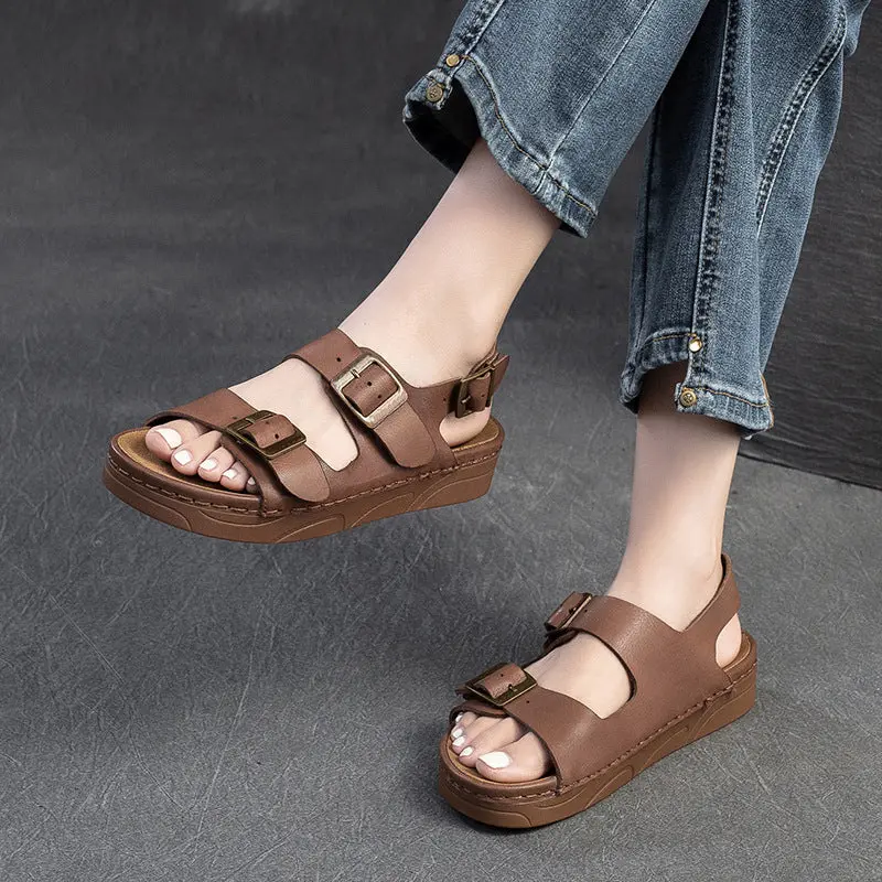 Women Retro Leather Flat Casual Buckle Sandals