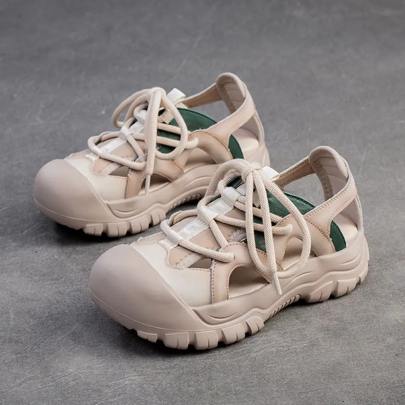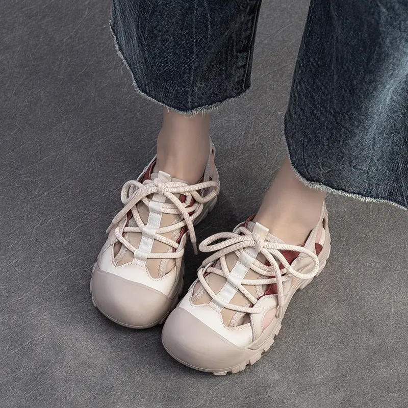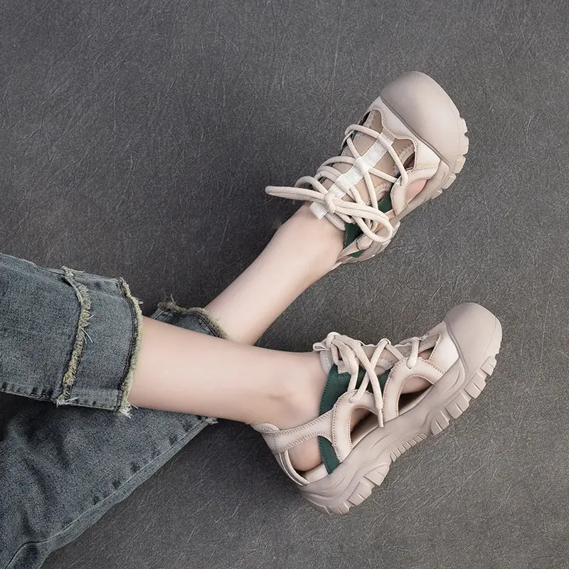Women Retro Leather Round Head Summer Sandals