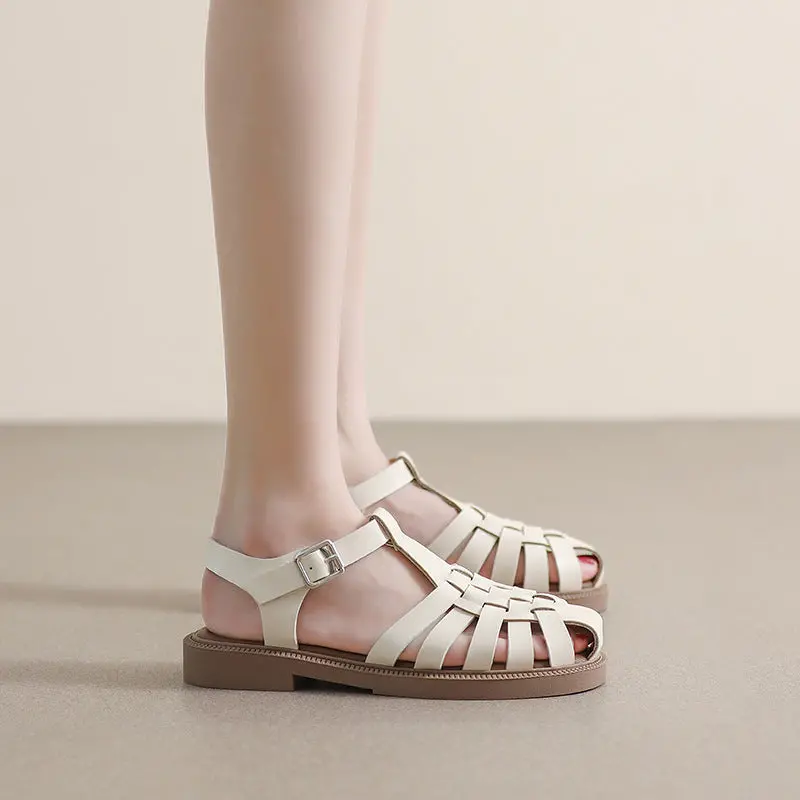 Women's Retro Plaited Leather Closed Toe Casual Sandals