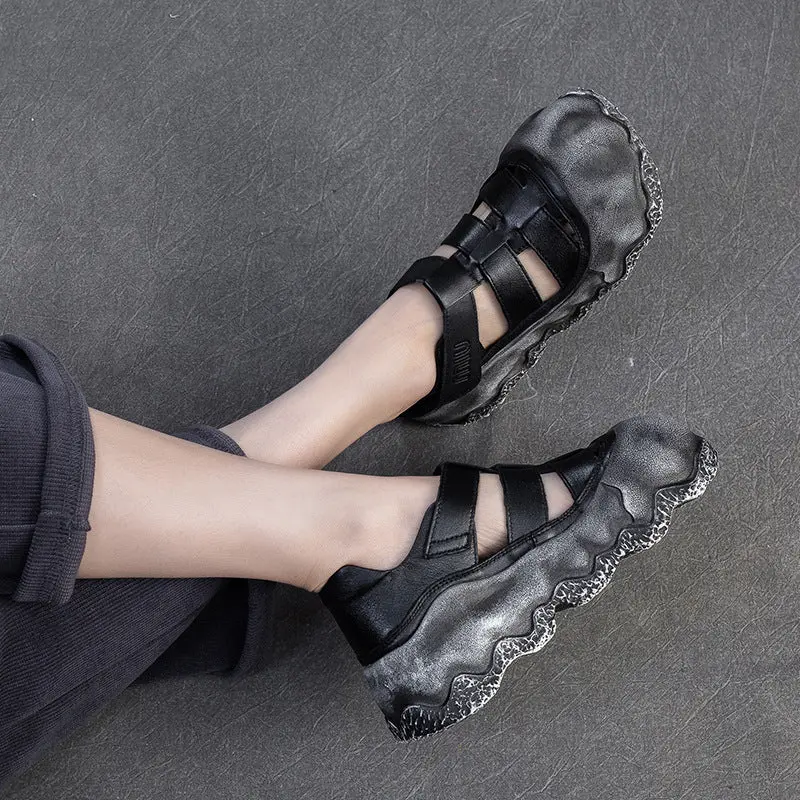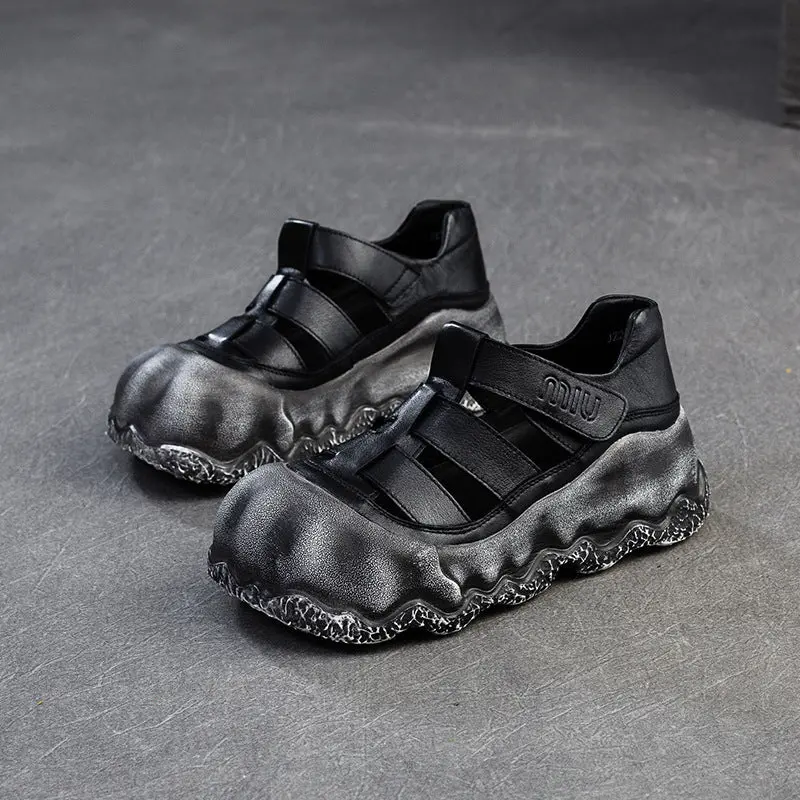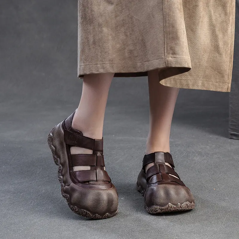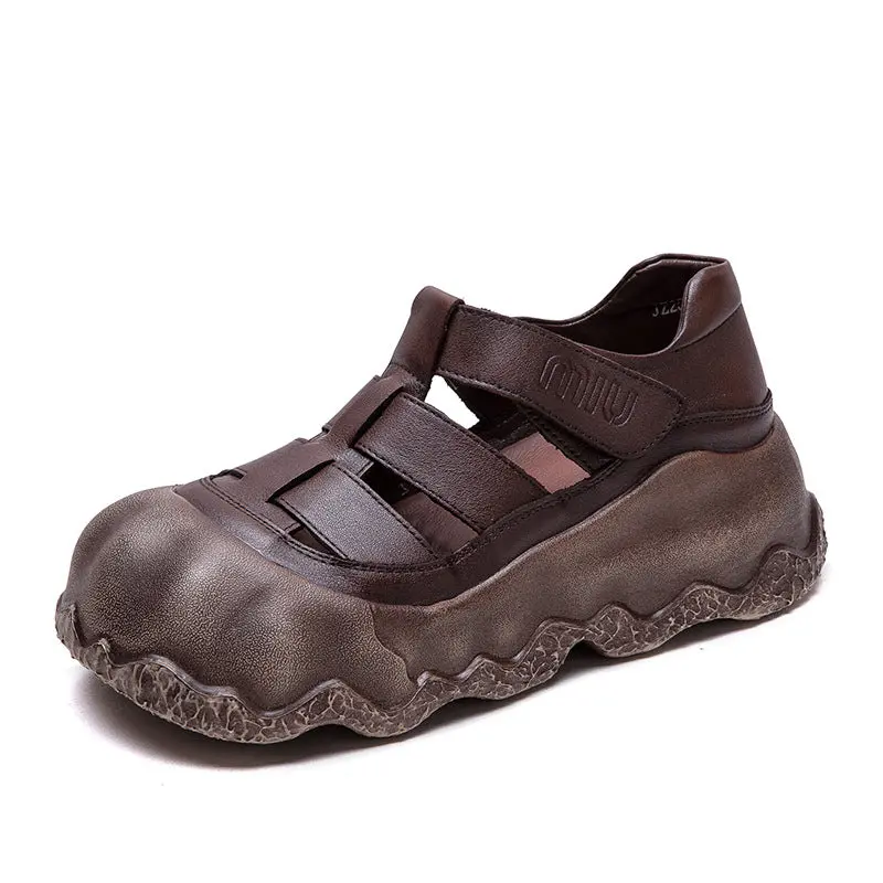 Women Vintage Hollow Leather Thick Soled Casual Sandals