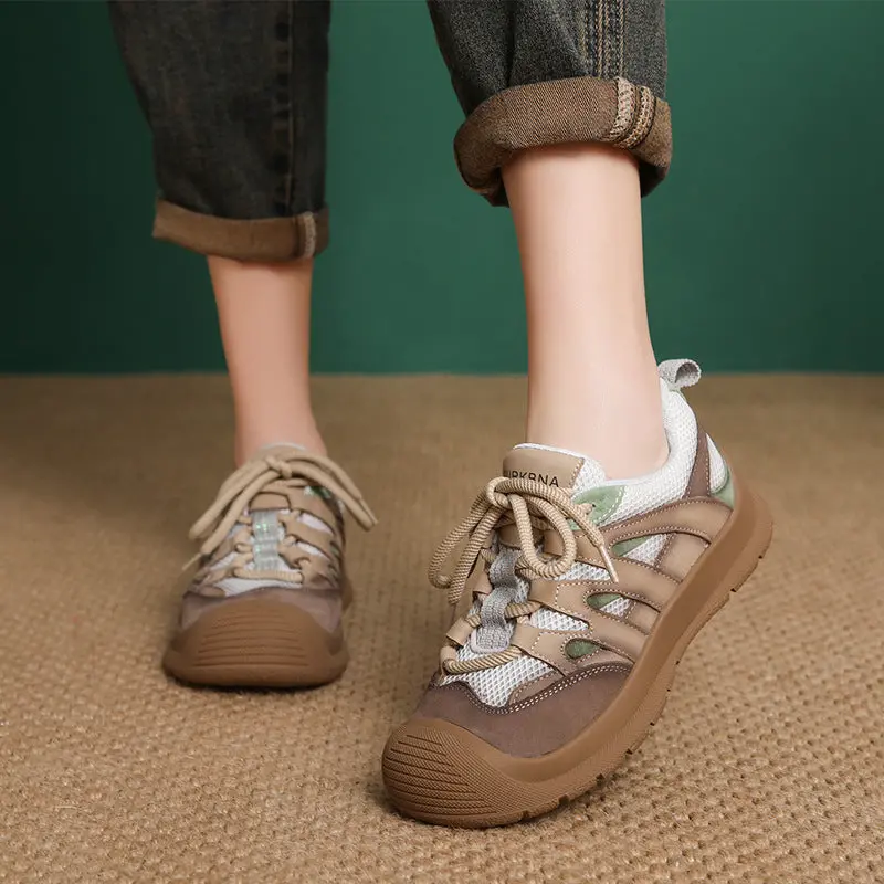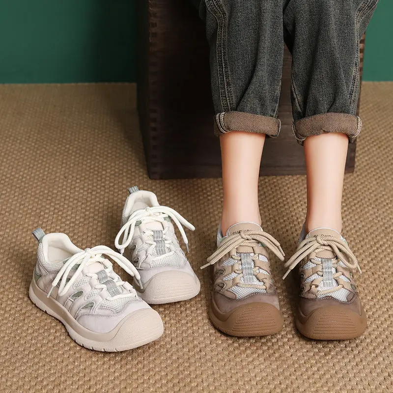 Women's Breathable Mesh Leather Low Top Casual Shoes