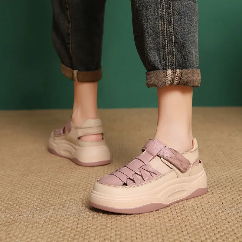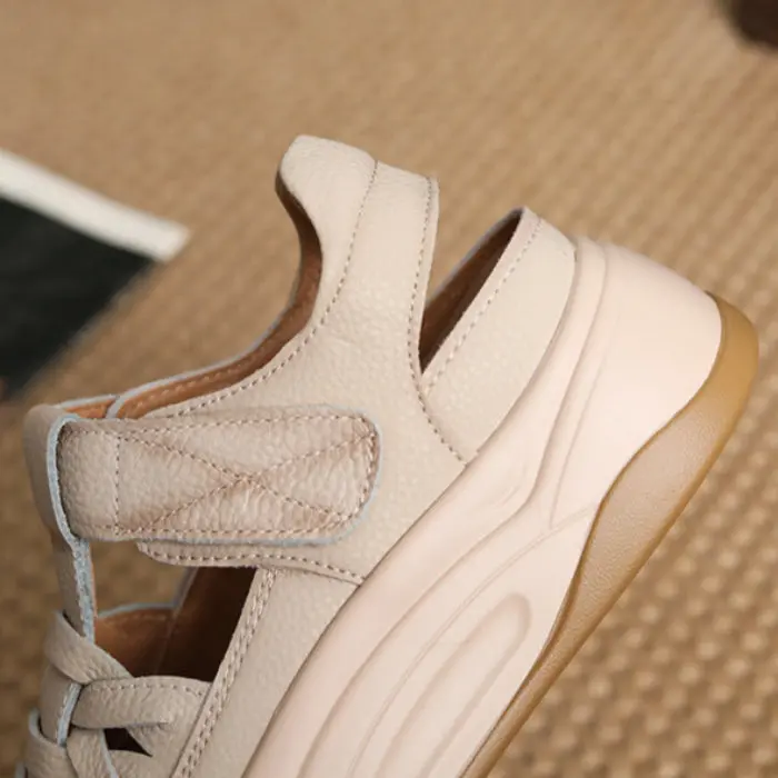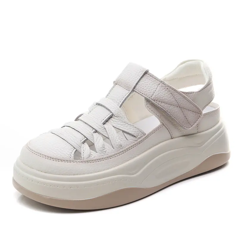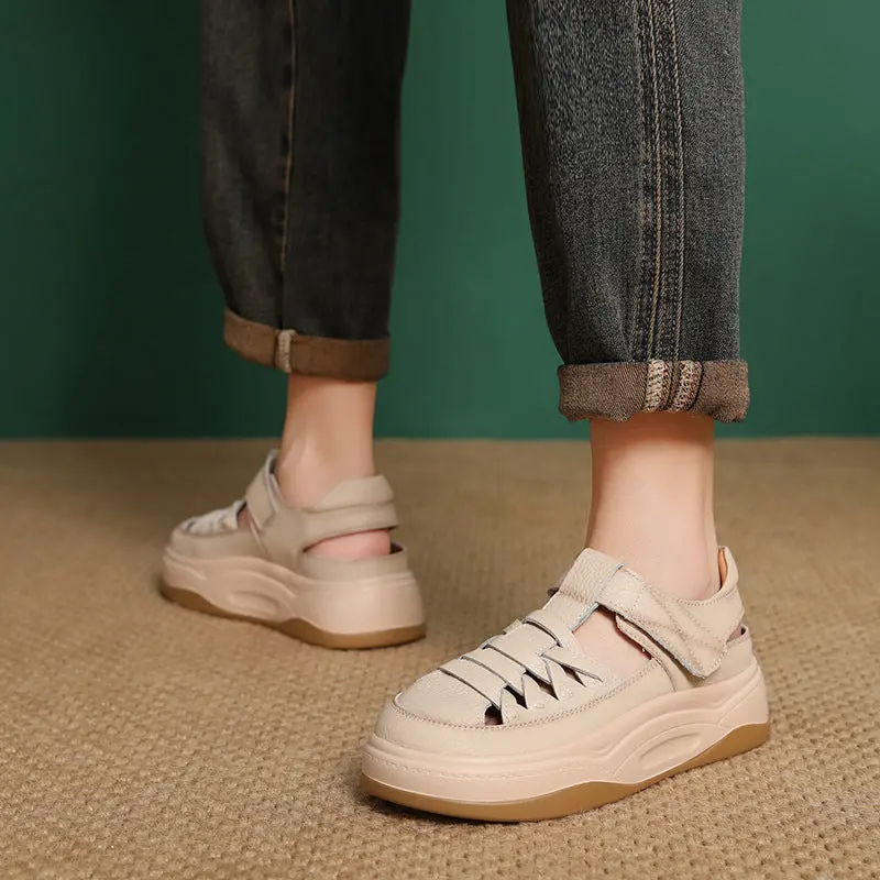 Women Minimalism Plain Leather Velcro Platform Sandals