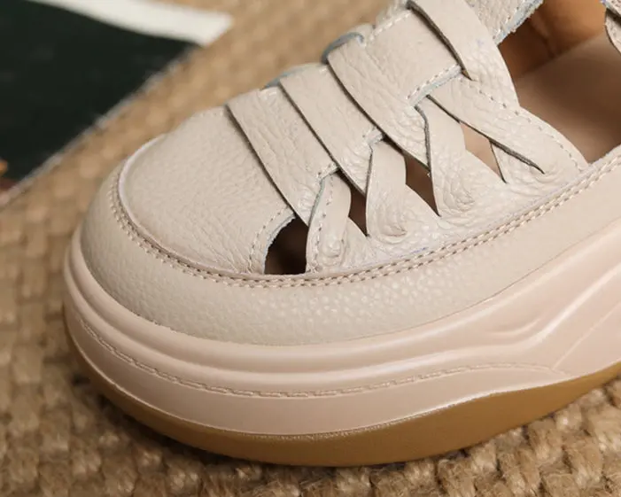 Women Retro Round Head Plaited Leather Casual Sandals
