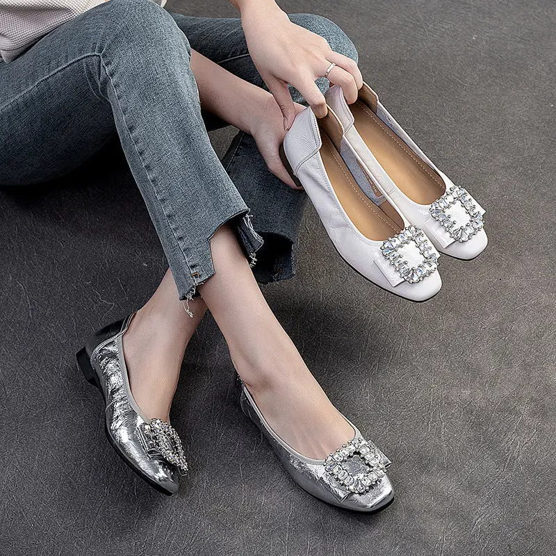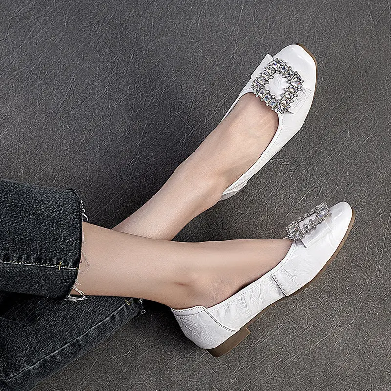 Women's Fashion Crystal Leather Low Top Casual Flats