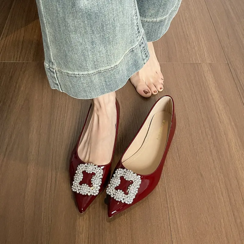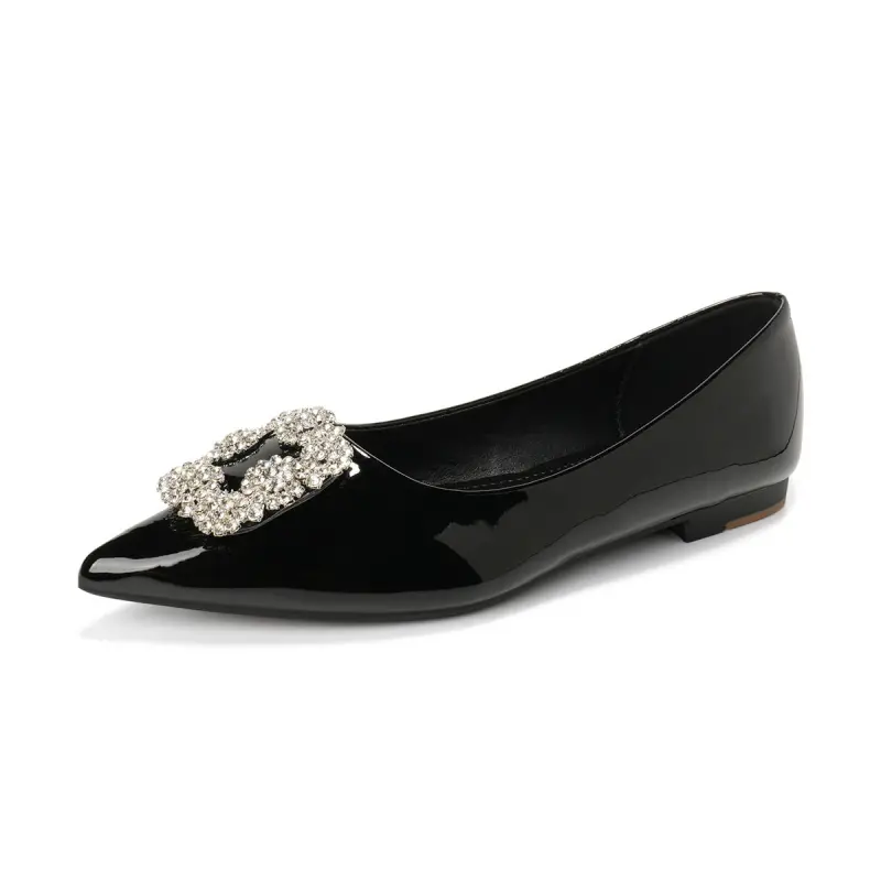 Elevate your elegance effortlessly with these pointed toe flats, featuring sparkling crystal accents and slip-on comfort for all-day wear. Perfect as work shoes or chic daily staples.