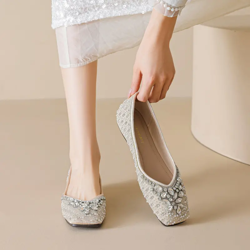 Women’s chic rhinestone – adorned flats, boasting special rhinestone detailing. With a comfy design, they’re perfect for daily looks or wedding occasions, blending style and ease.