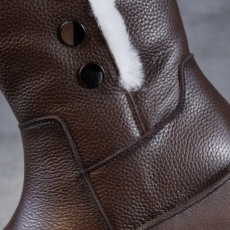 Women's Genuine Leather Woolen Mid-Calf Snow Boots