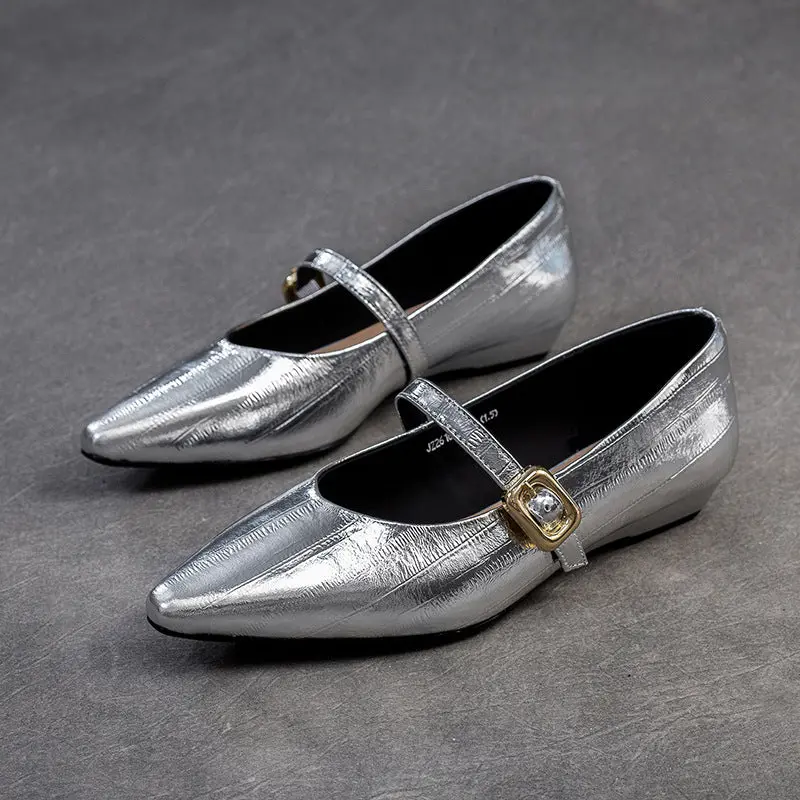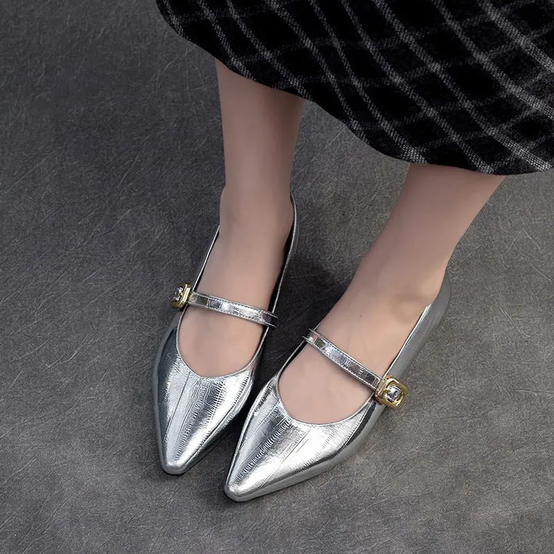 Women's Minimalism Plain Leather Low Top Pointed Toe Flat