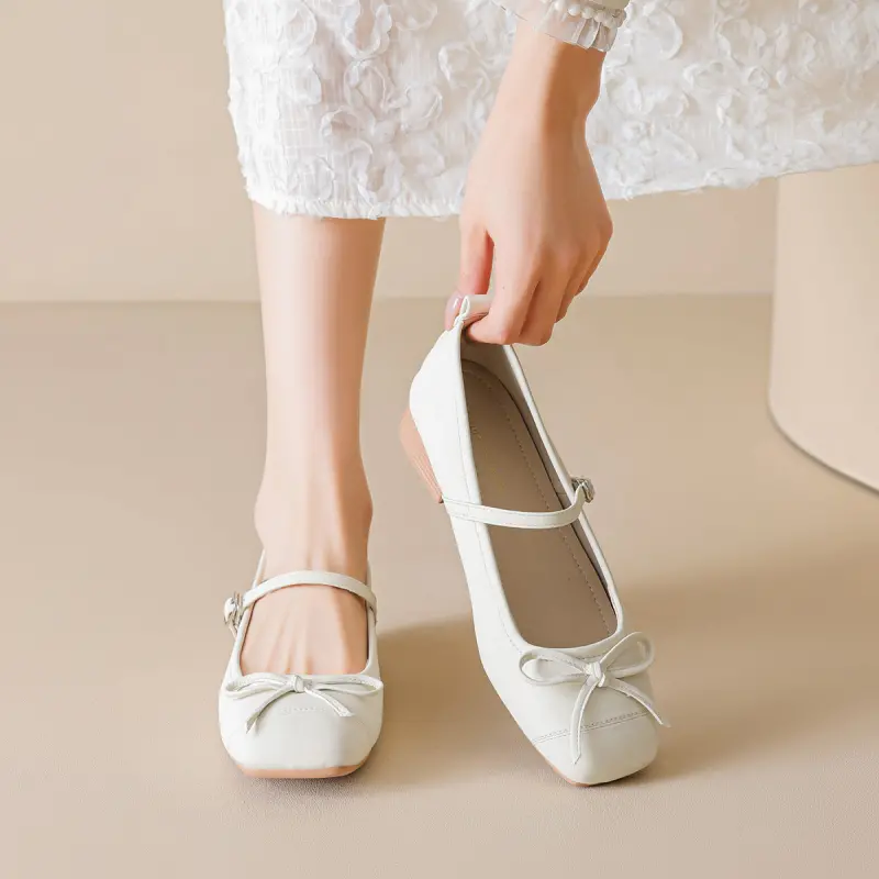 Women’s Mary Jane shoes—featuring a charming bowknot and a comfortable low heel, ideal for pairing with skirts.