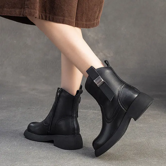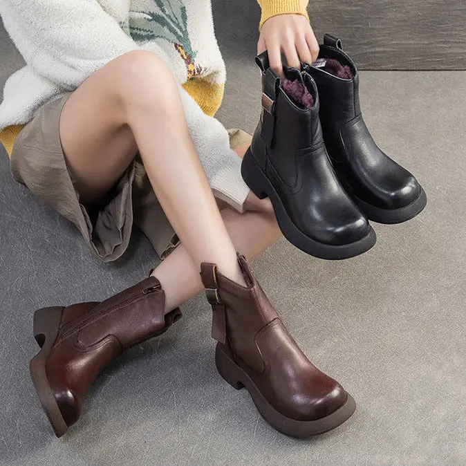 Women's Minimalist Plain Leather Woolen Ankle Boots