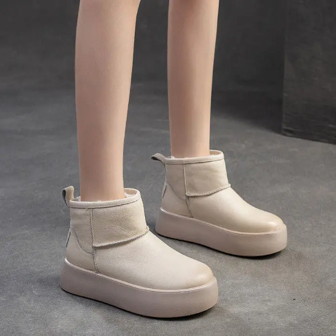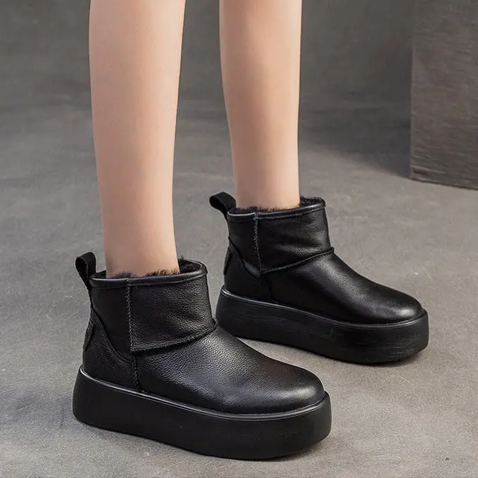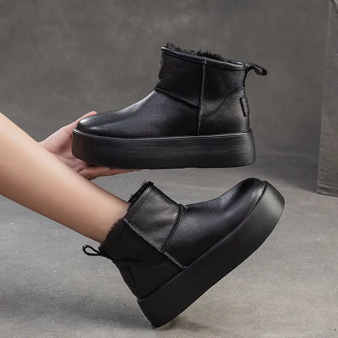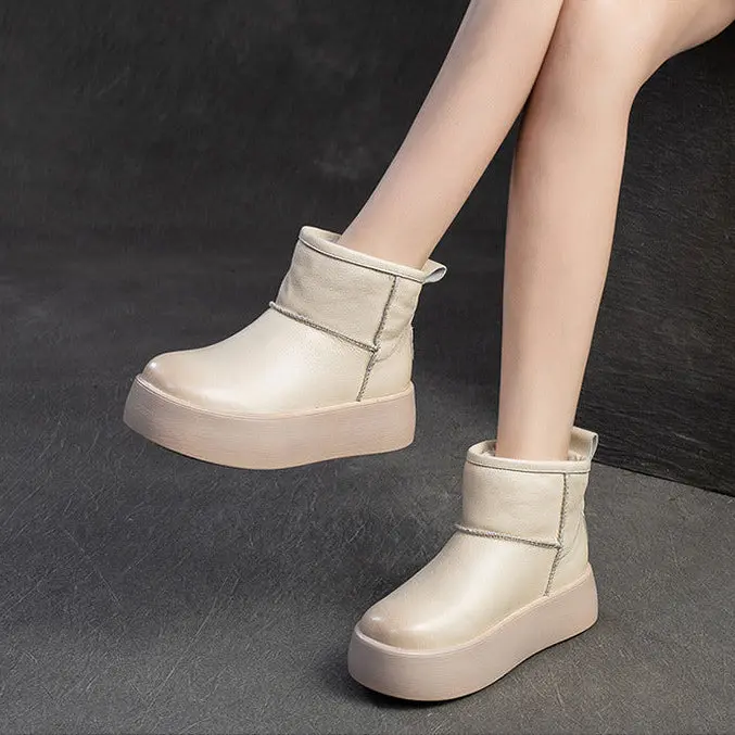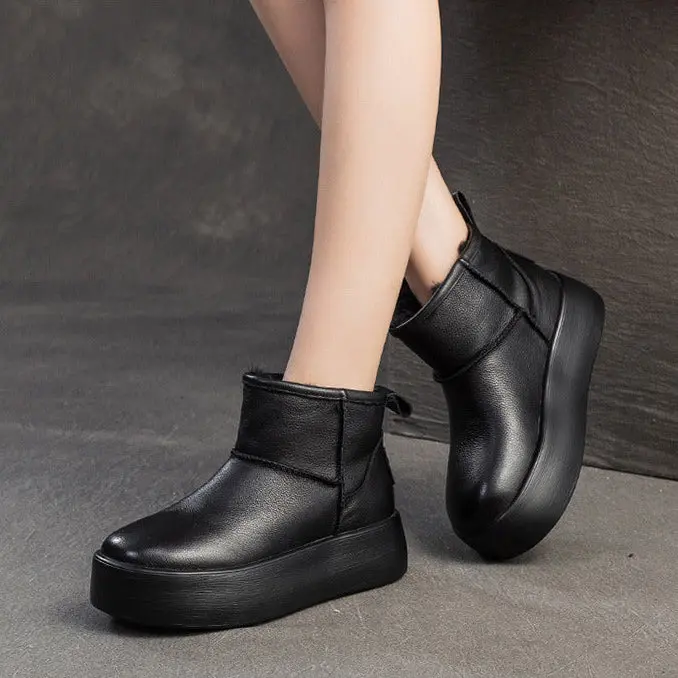 Women's Plain Leather Platform Ankle Snow Boots