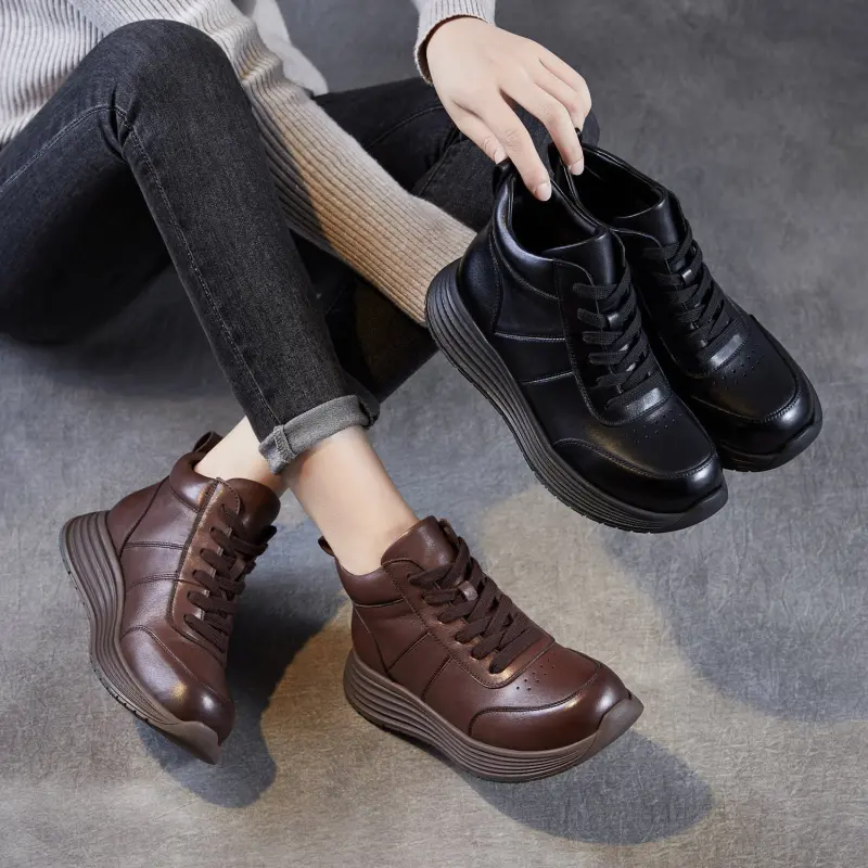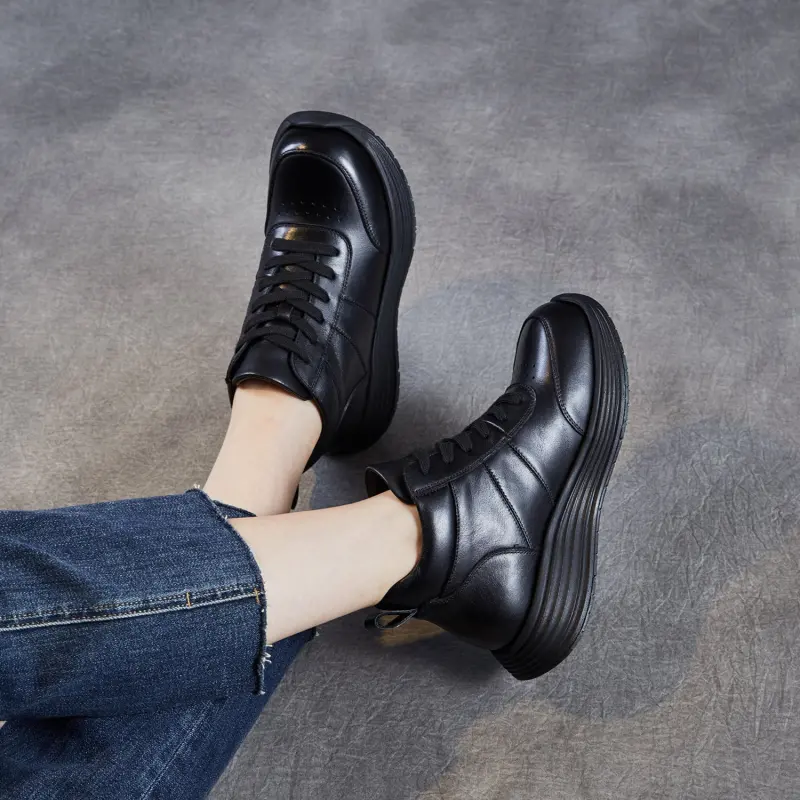 Women's Retro Leather Breathable Lace-up Ankle Boots