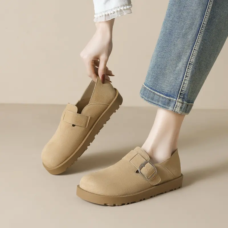 Women’s leather buckle loafers, blending classic design with daily comfort. Ideal for casual spring – fall outings.