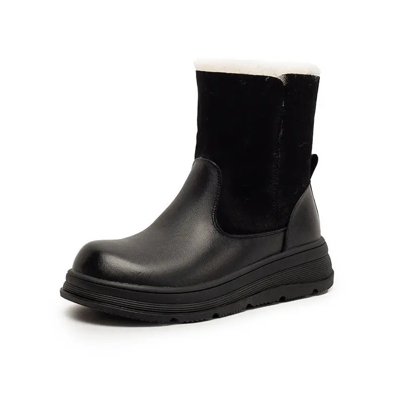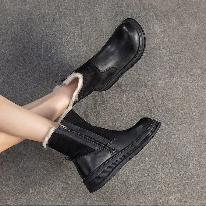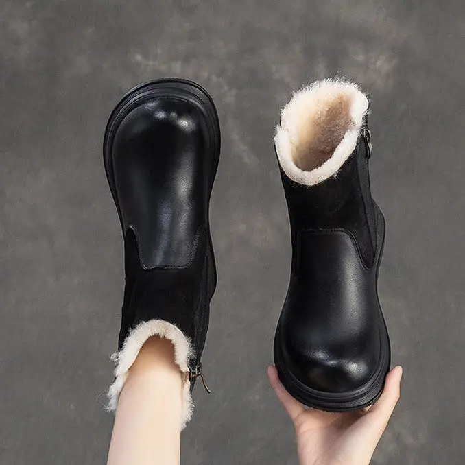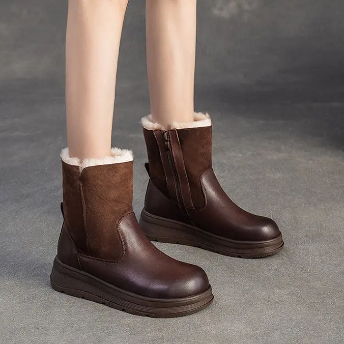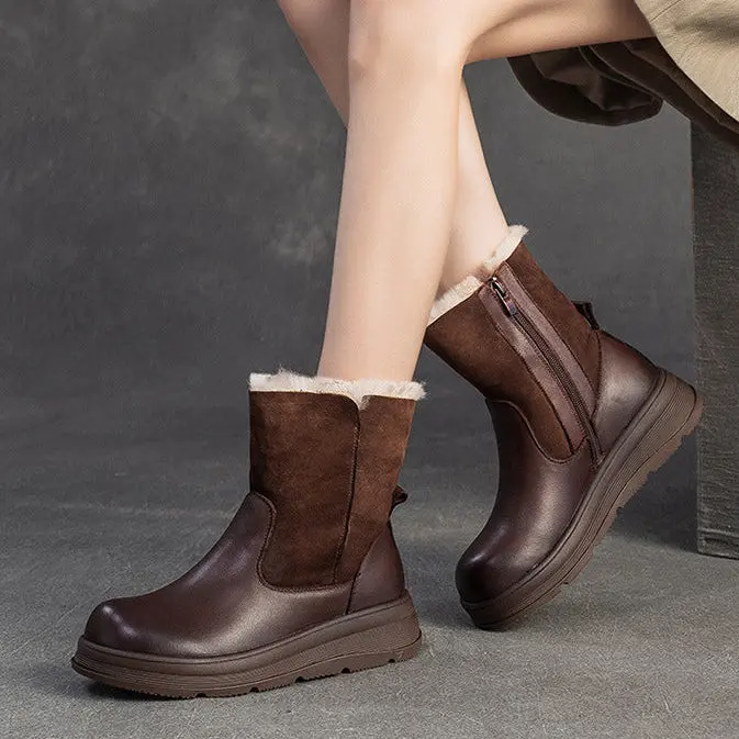 Women's Retro Leather Comfort Fleece Snow Boots