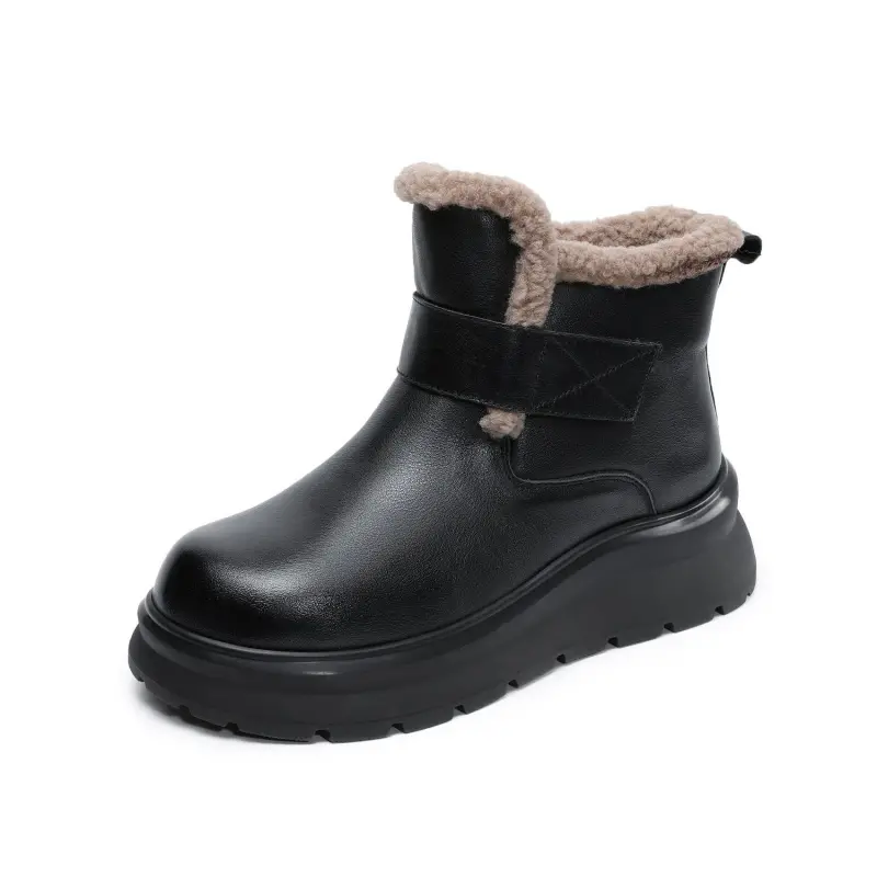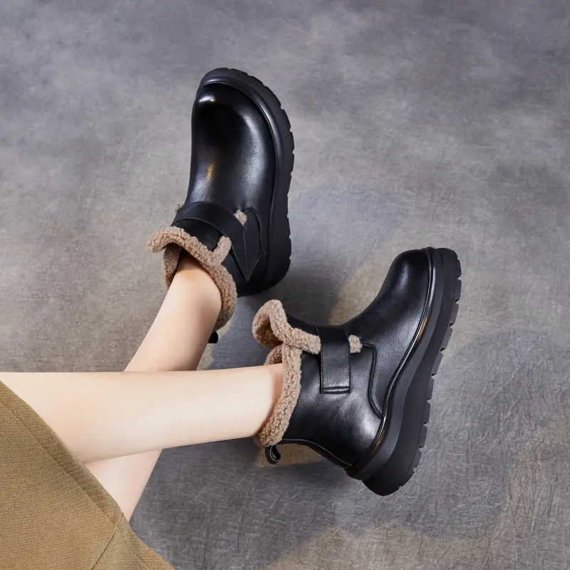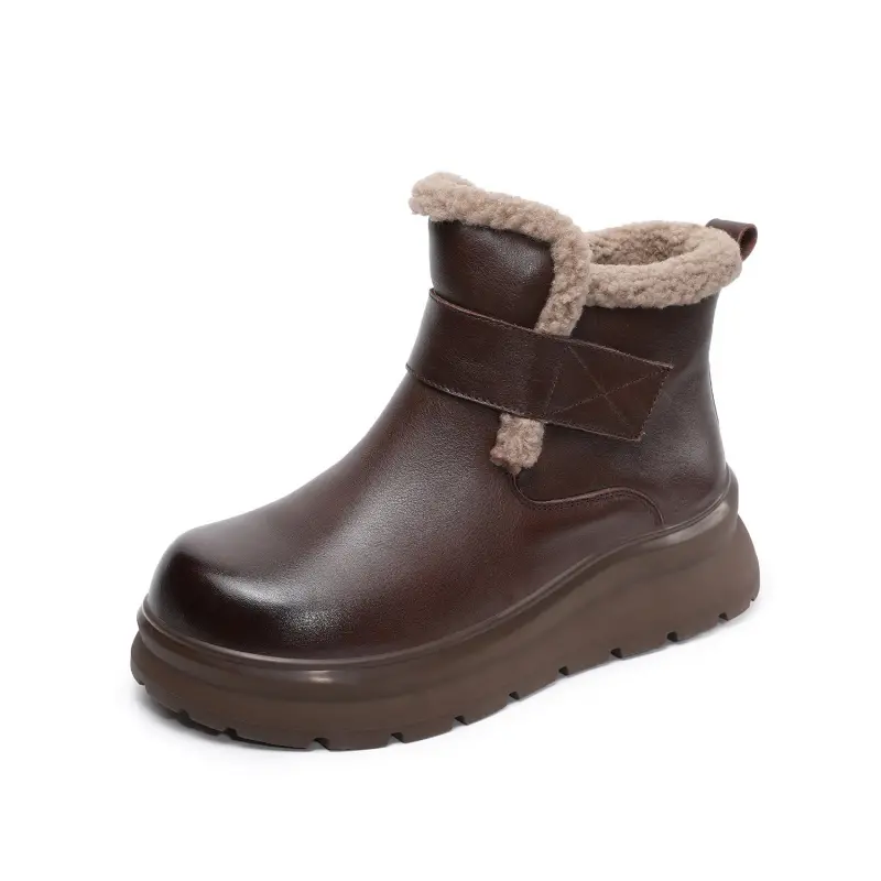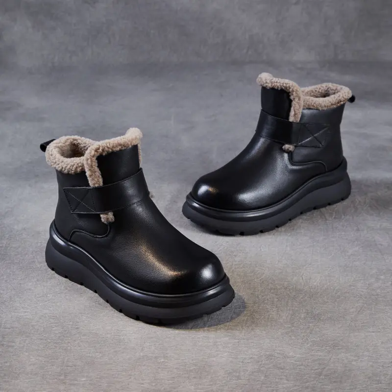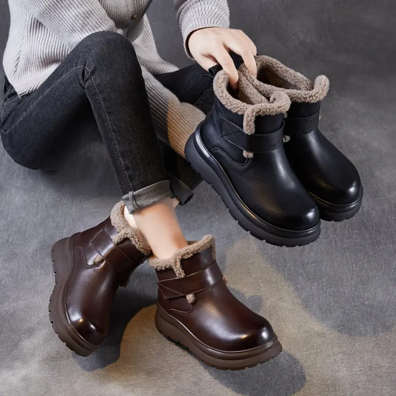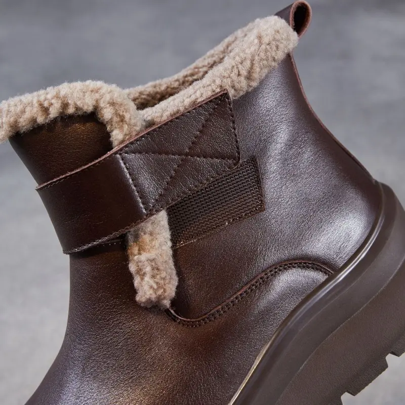 Women's Retro Leather Comfort Velcro Ankle Snow Boots
