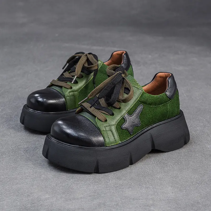 Women's Retro Leather Flat Platform Casual Shoes