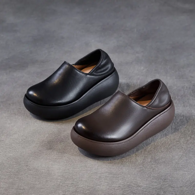 Step into retro – chic comfort with these Women’s Leather Platform Shoes. Crafted from top – grain cowhide, they feature a 6cm rubber – foam platform, top – grain pigskin insoles, and a slip – on design for easy way wear. Perfect for spring – autumn casual styling.