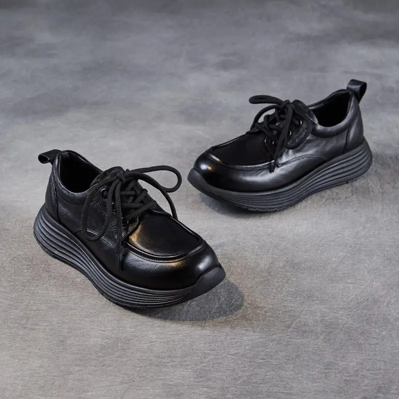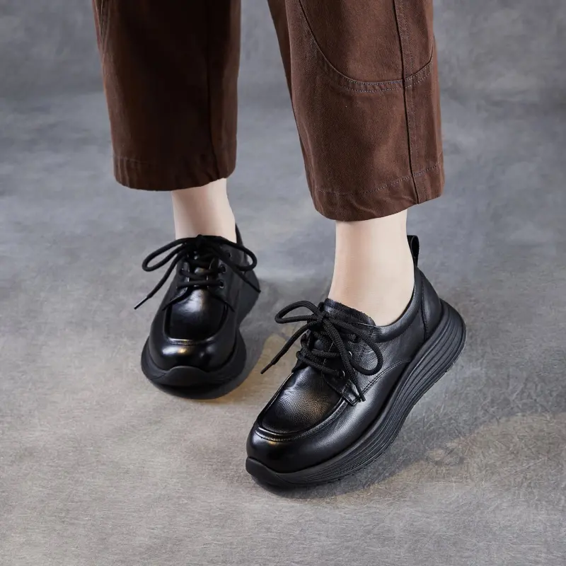 Women’s Retro Leather Platform Lace – up Shoes. Crafted from hand – textured top – grain leather, they feature a lace – up design, a 4.0cm EVA – foam + rubber platform, and top – grain pigskin insoles for comfort. Perfect for year – round casual styling.
