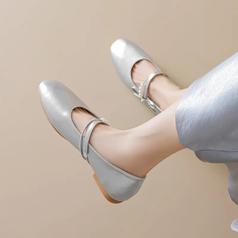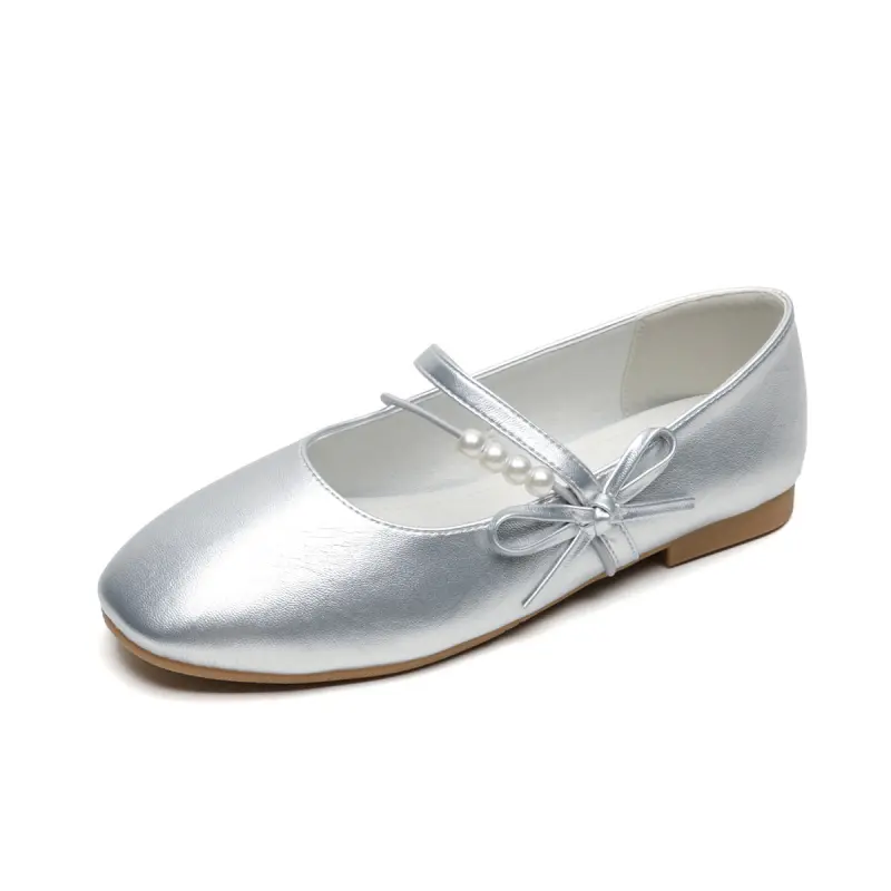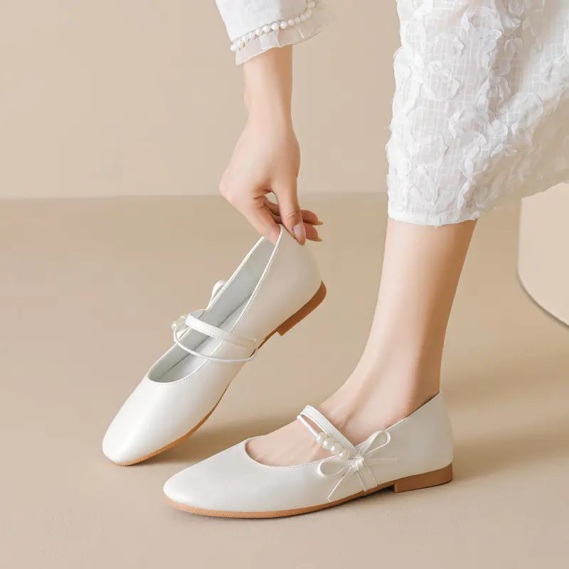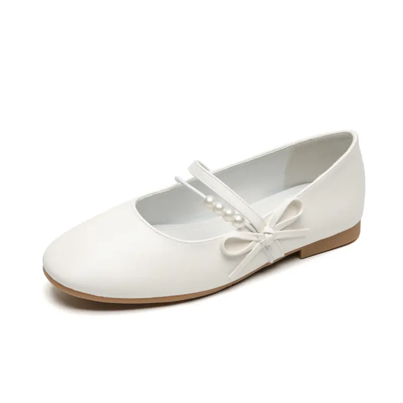 Women’s casual Mary Jane flats with a bow and pearl detail, featuring microfiber leather and a comfortable design for daily wear.