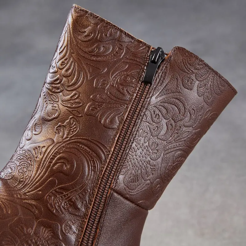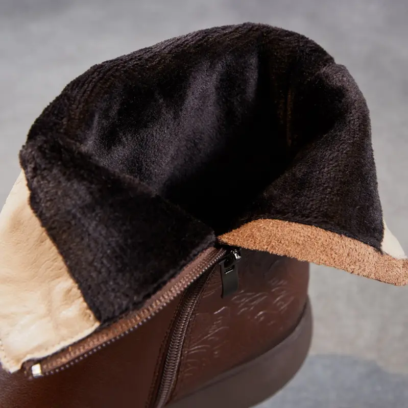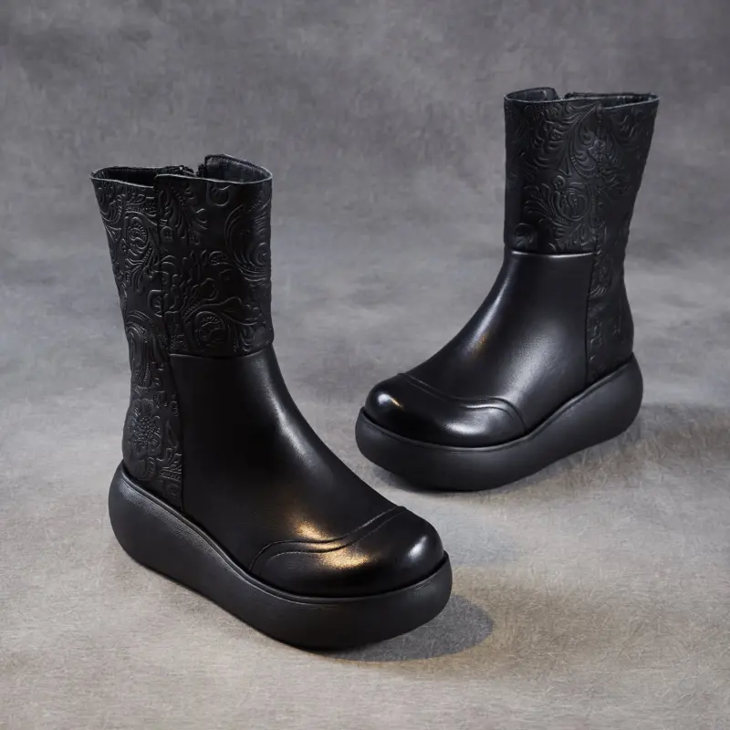 Women Retro Plain Leather High Top Flip-Flops Sandals