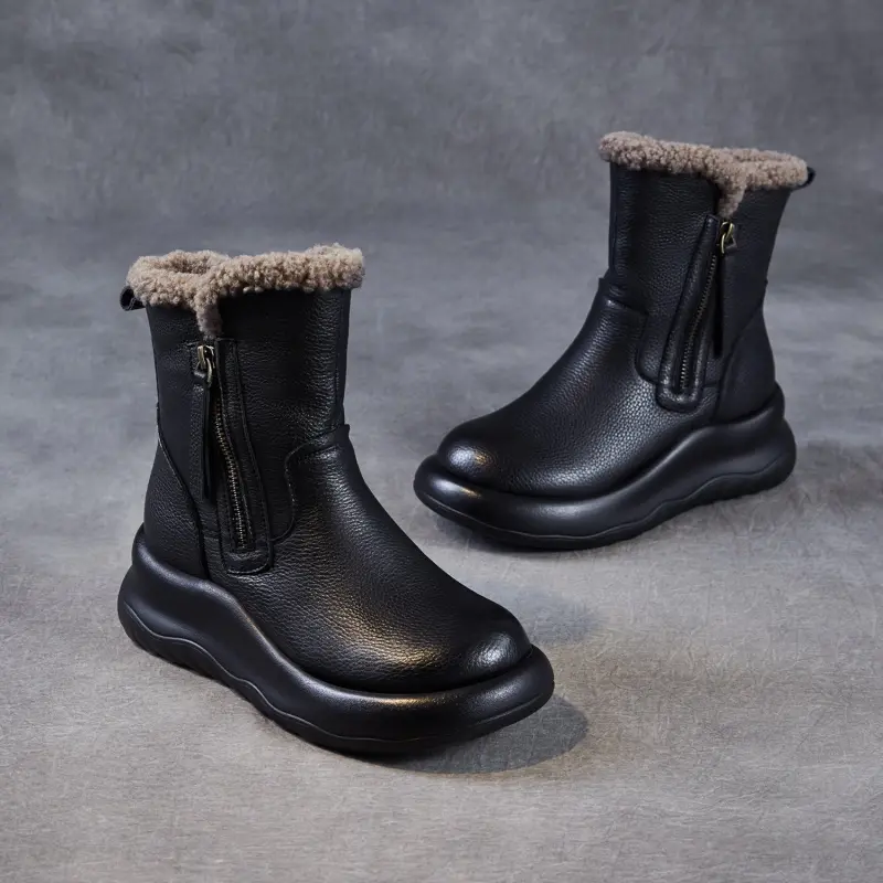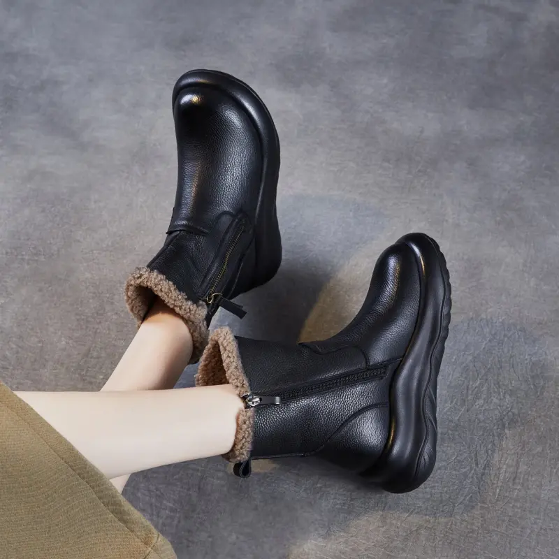 Women's Vintage Leather Furred Mid-Calf Snow Boots