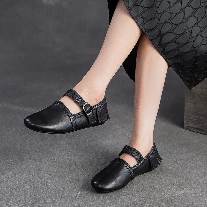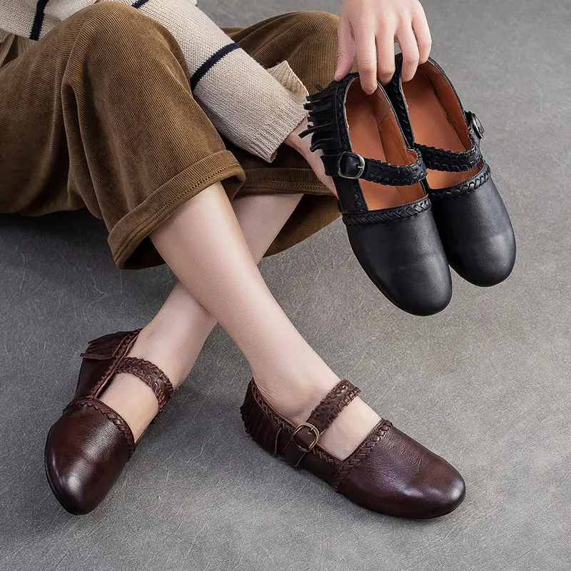 Women's Retro Plain Leather Round Head Velcro Sandals