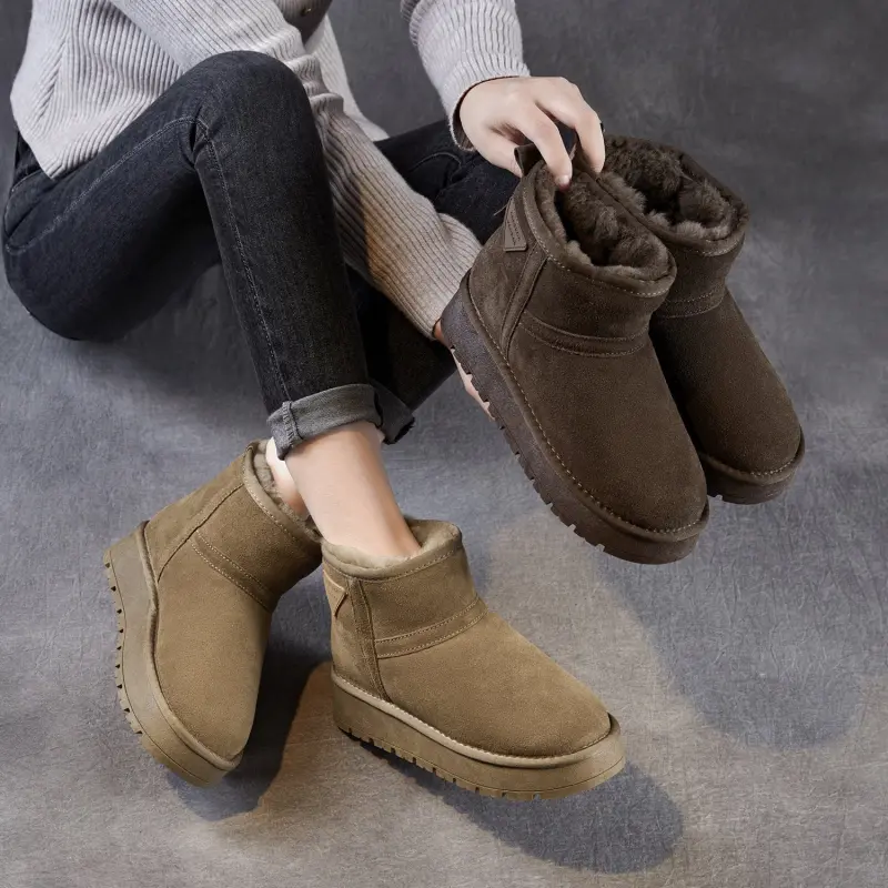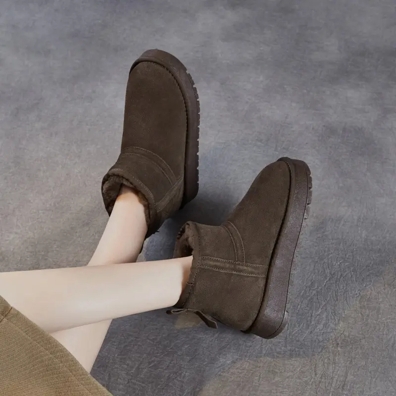 Women's Vintage Suede Slip-on Ankle Snow Boots